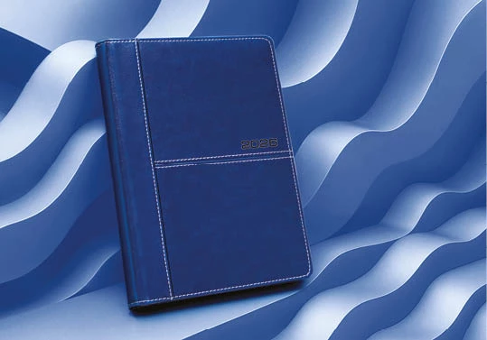 | Dodatkowe informacje | wycięte registry 2 rzędowe, perforacja narożników, zaokrąglone rogi, okładka z łączonej ekoskóry termoprzebarwialnej, obszyta, rok – tłoczony |