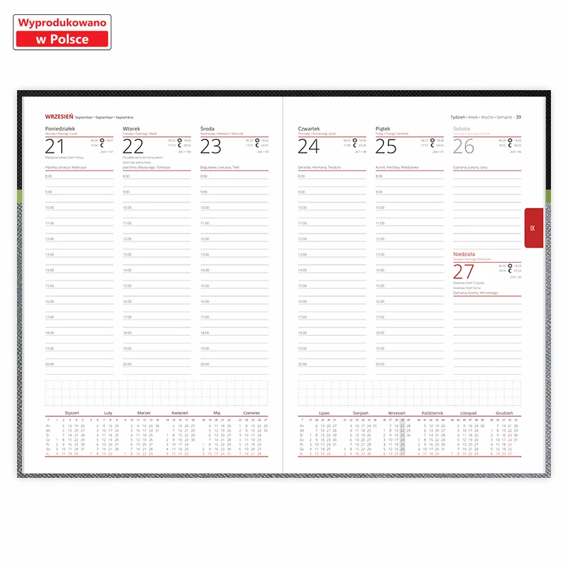 Kalendarz książkowy B5 oprawa łączona - Rozkład Tygodniowy - Czerwony