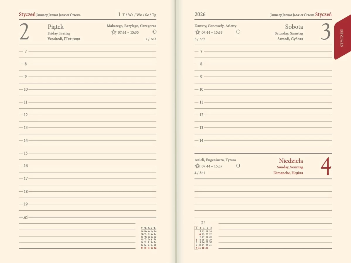 | Układ | dzień na stronie |