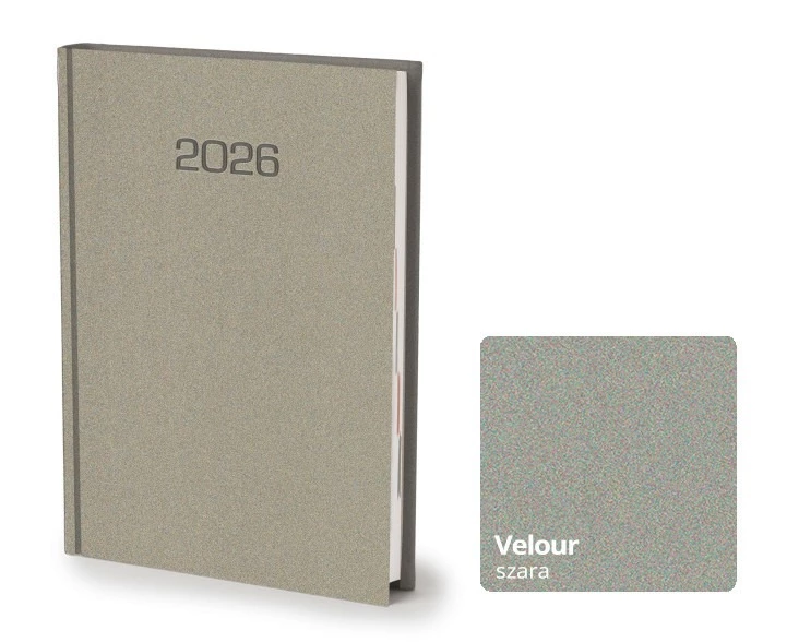 Kalendarz książkowy Velour A5 - Rozkład Dzienny - Szary
