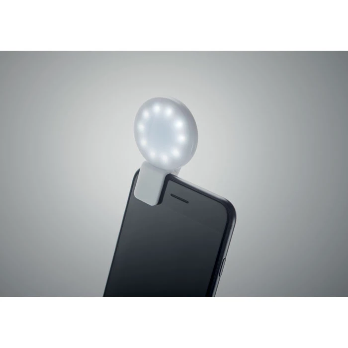 | Dodatkowe informacje | Przenośna lampa pierścieniowa do selfie o średnicy 3 cm, wykonana z tworzywaABS, wyposażona w 20 diod LED. 3 poziomowa regulacja jasności oświetlenia.Bateria 100 mAh ładowana poprzez USB. |